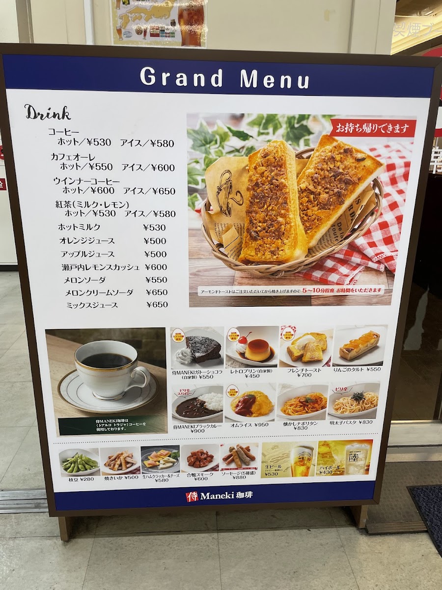 Welcome to 侍MANEKI珈琲, a delightful café nestled within the bustling surroundings of Himeji Station in Japan. This charming spot is an ideal haven for travelers seeking a quick and satisfying bite before boarding the shinkansen. The menu boasts a variety of offerings that pay homage to local flavors and comfort food.
